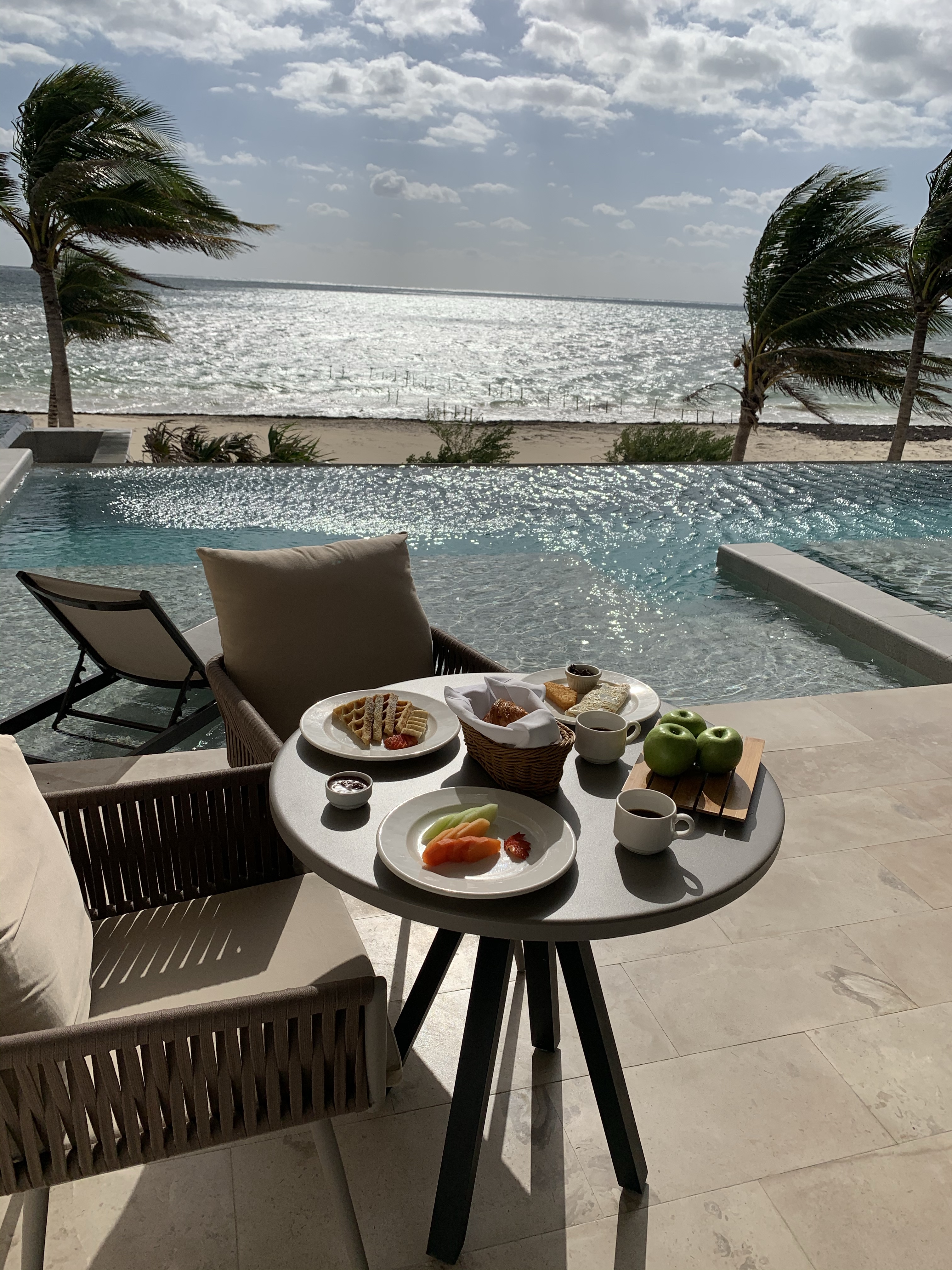 I was pleasantly surprised to find out that the swim out was also heated so I could use it any time of day which was wonderful. I ended up meeting my neighbors and they were awesome, we had the server (Marilu) bringing us drinks right to our swim outs! I was impressed with the high level of service and care for the guests at the resort- you could tell they were all trained very well and extremely hard workers. Service can really make or break a trip and it definitely added to the ease and enjoyment of mine. I also ordered room service one night after the evening show and a few cocktails and it was fast, fresh and delicious.
